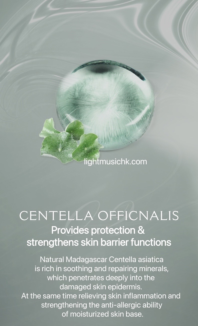 Natural Madagascar Centella asiatica is rich in soothing and repairing minerals, which penetrates deeply into the damaged skin epidermis. At the same time relieving skin inflammation and strengthening the anti-allergic ability of moisturized skin base.