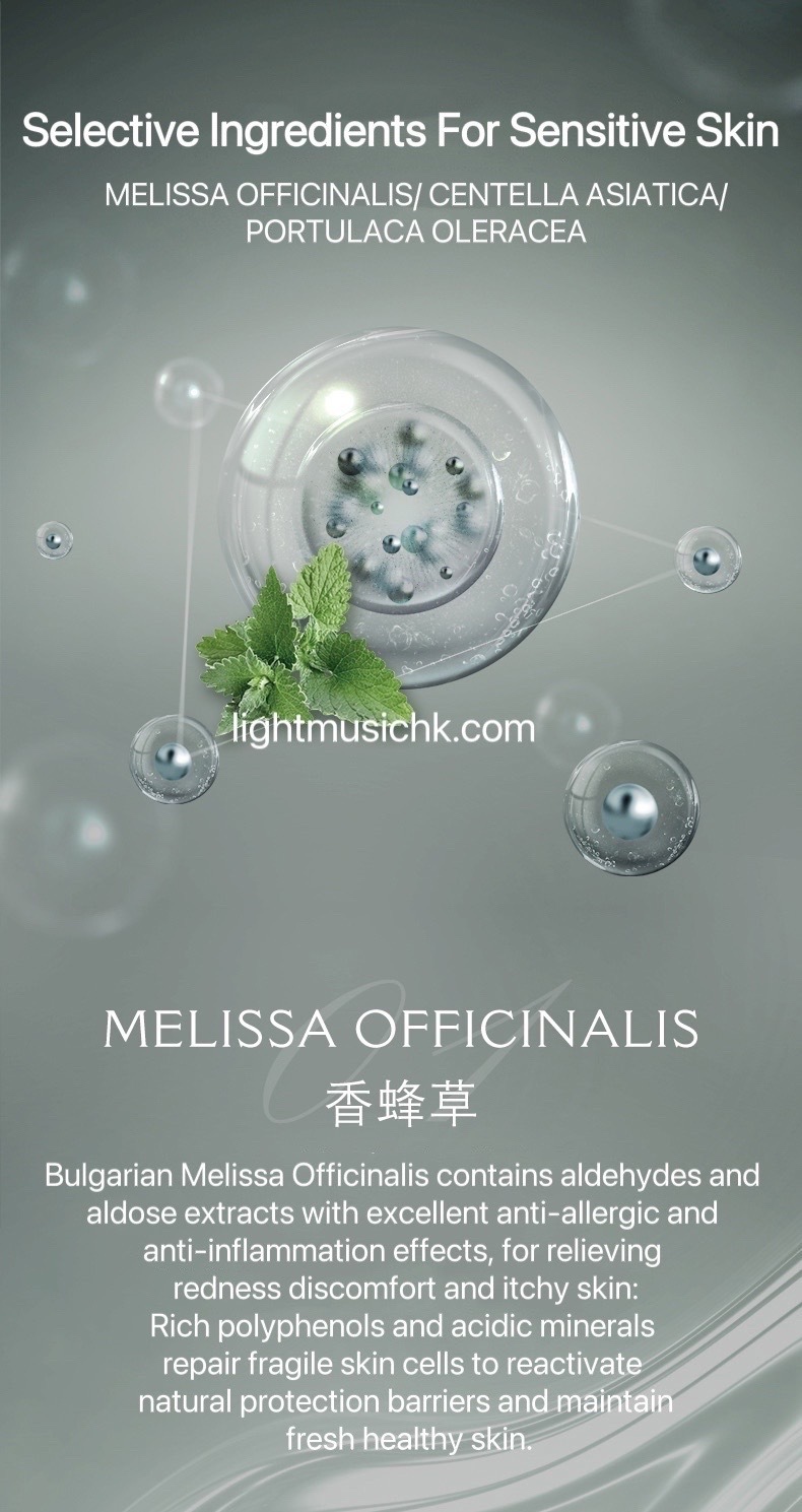 Bulgarian Melissa Officinalis contains aldehydes and aldose extracts with excellent anti-allergic and anti-inflammation effects, for relieving redness discomfort and itchy skin: