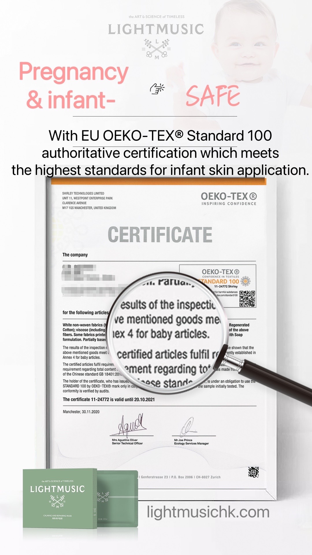 *With EU OEKO-TEX® Standard 100 authoritative certification which meets the highest standards for infant skin application. Safe for pregnant women and sensitive skin.