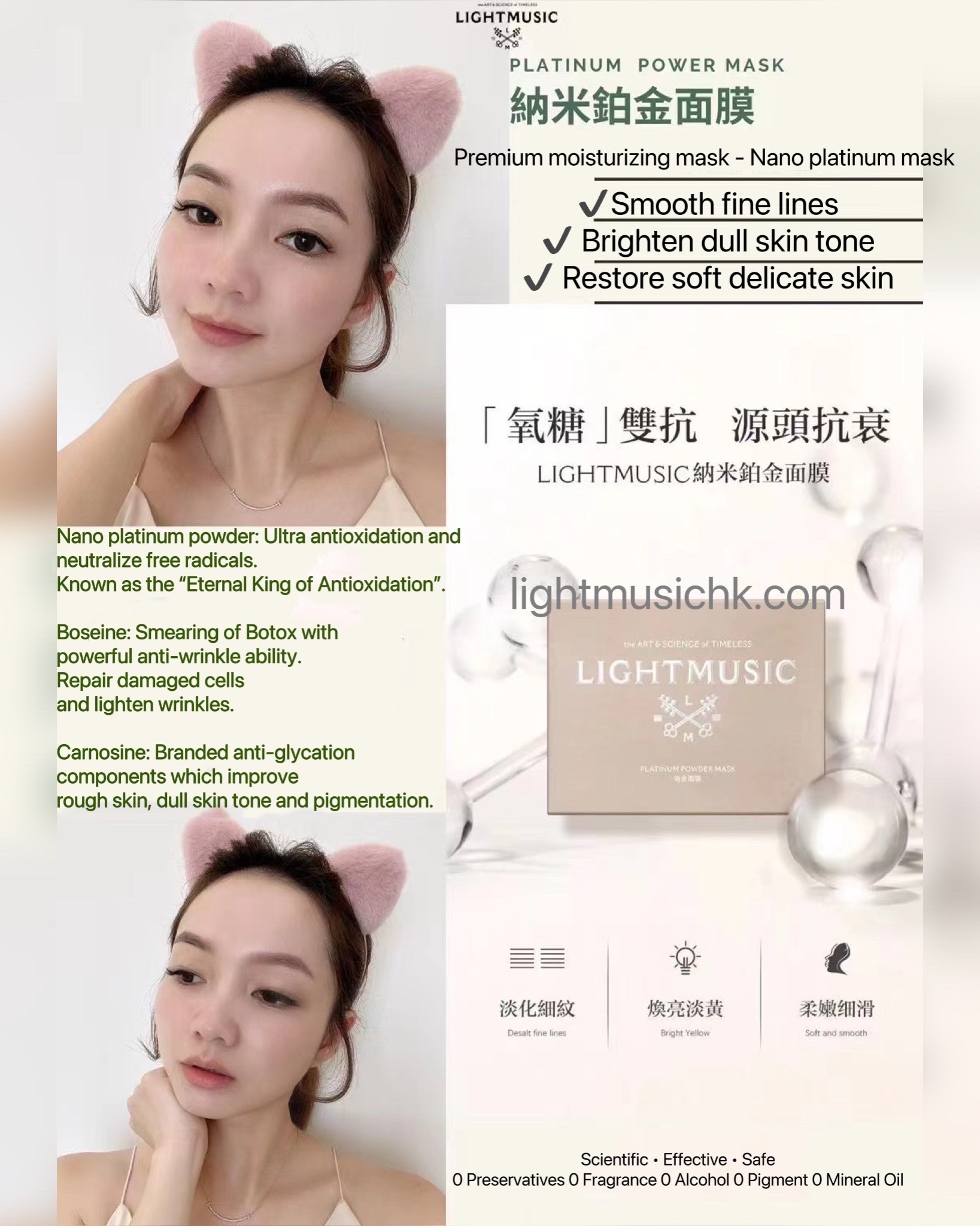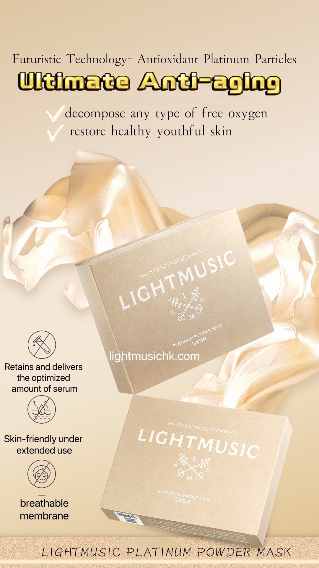 LIGHTMUSIC Platinum mask - Specially formulated for anti-oxidation, anti-glycation and anti-aging