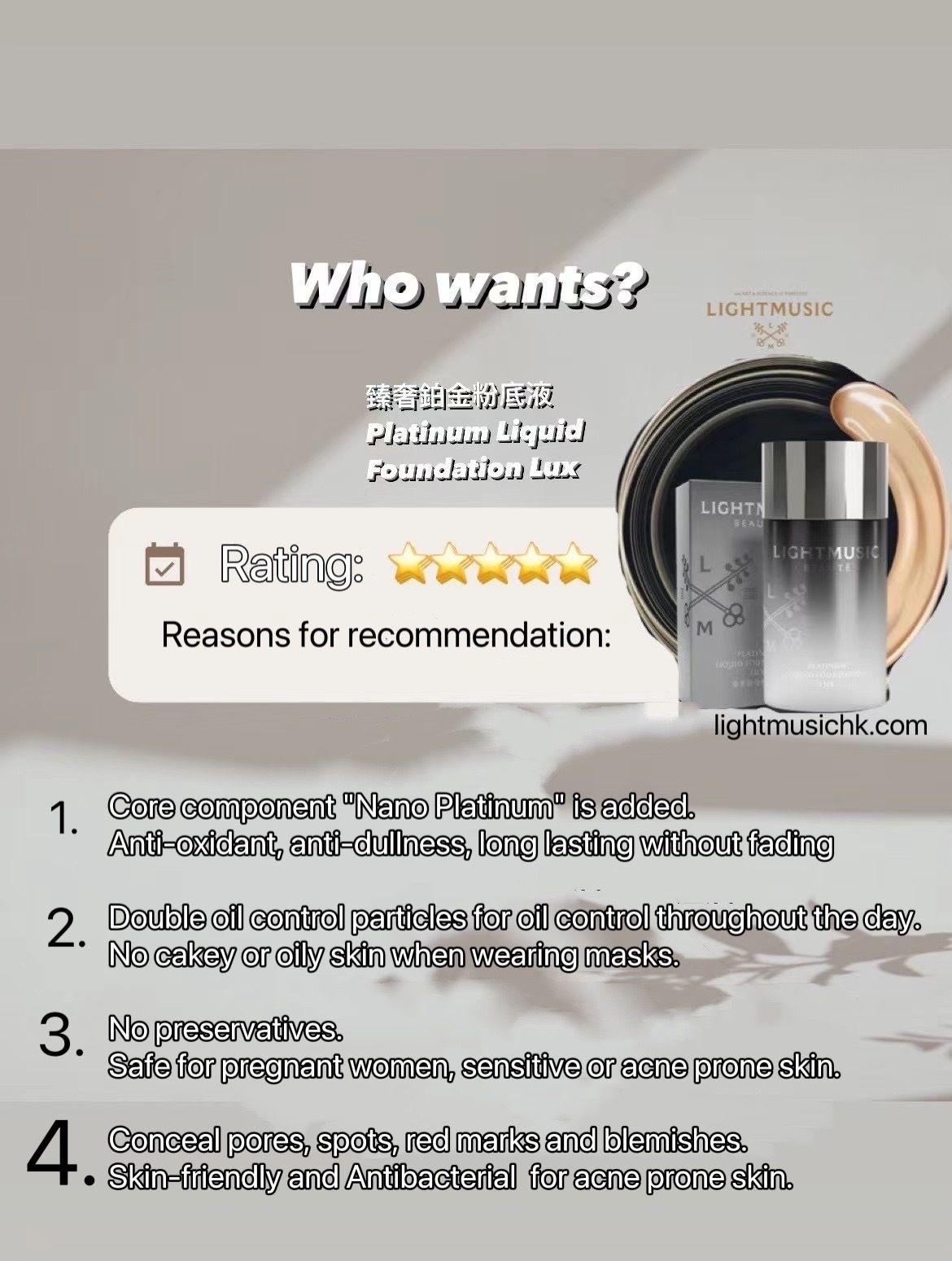 LIGHTMUSIC BEAUTÉ PLATINUM LIQUID FOUNDATION LUX