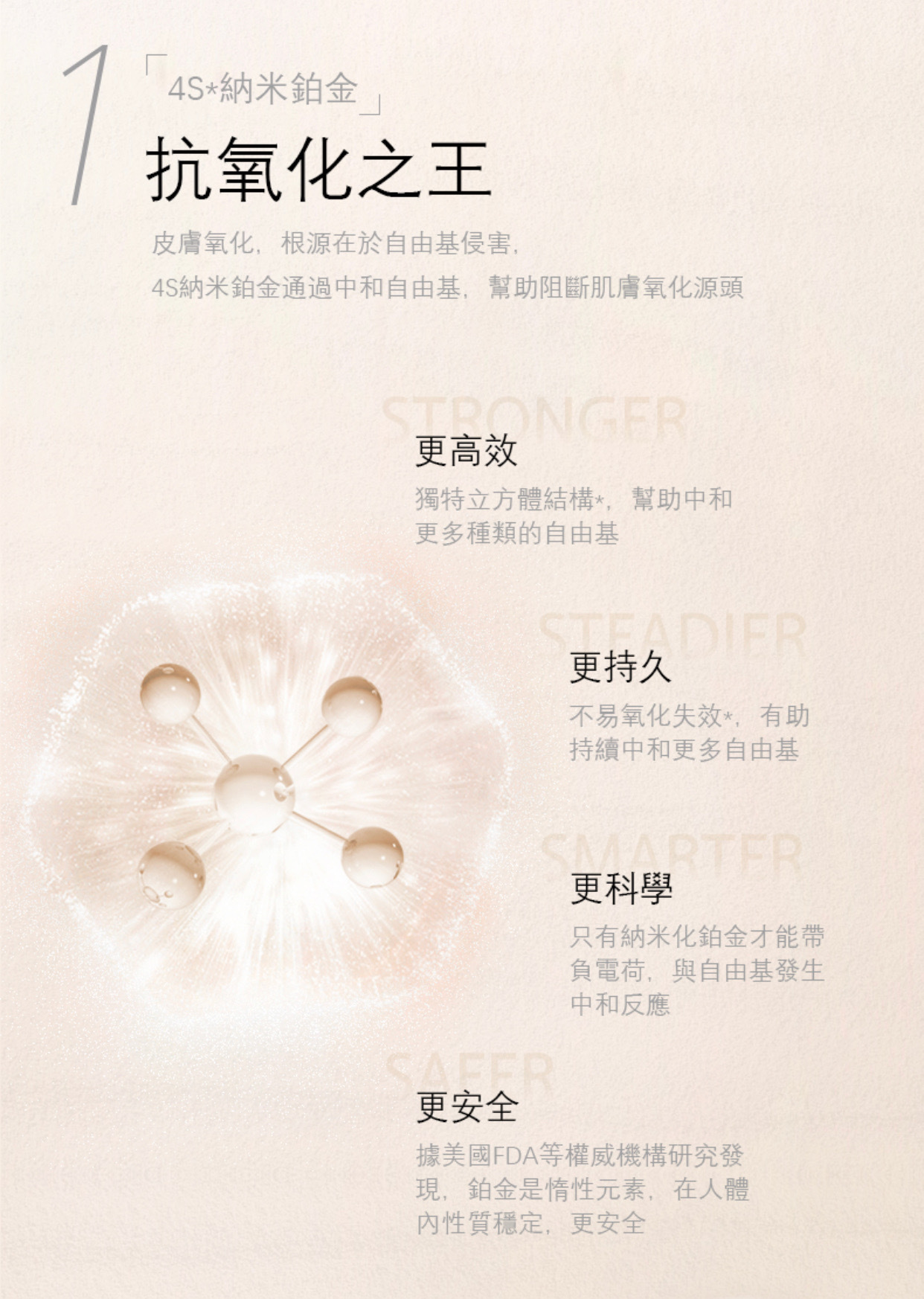 品牌專有成分— 「永不衰竭的抗氧化之王」鉑金微粒