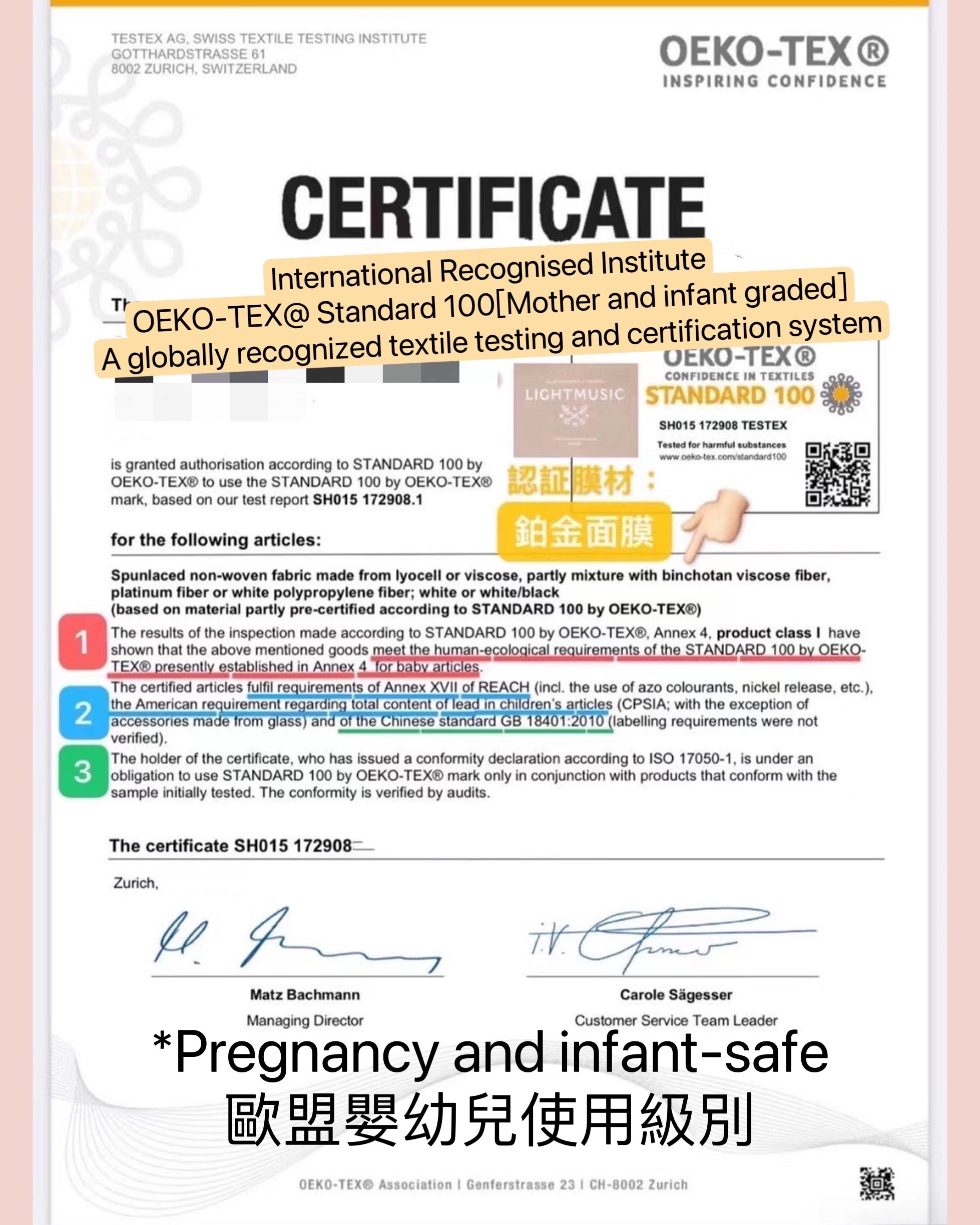 LIGHTMUSIC首創鉑金纖維膜布。以鉑金微粒為原料,與創新性植物纖維混合成纖。