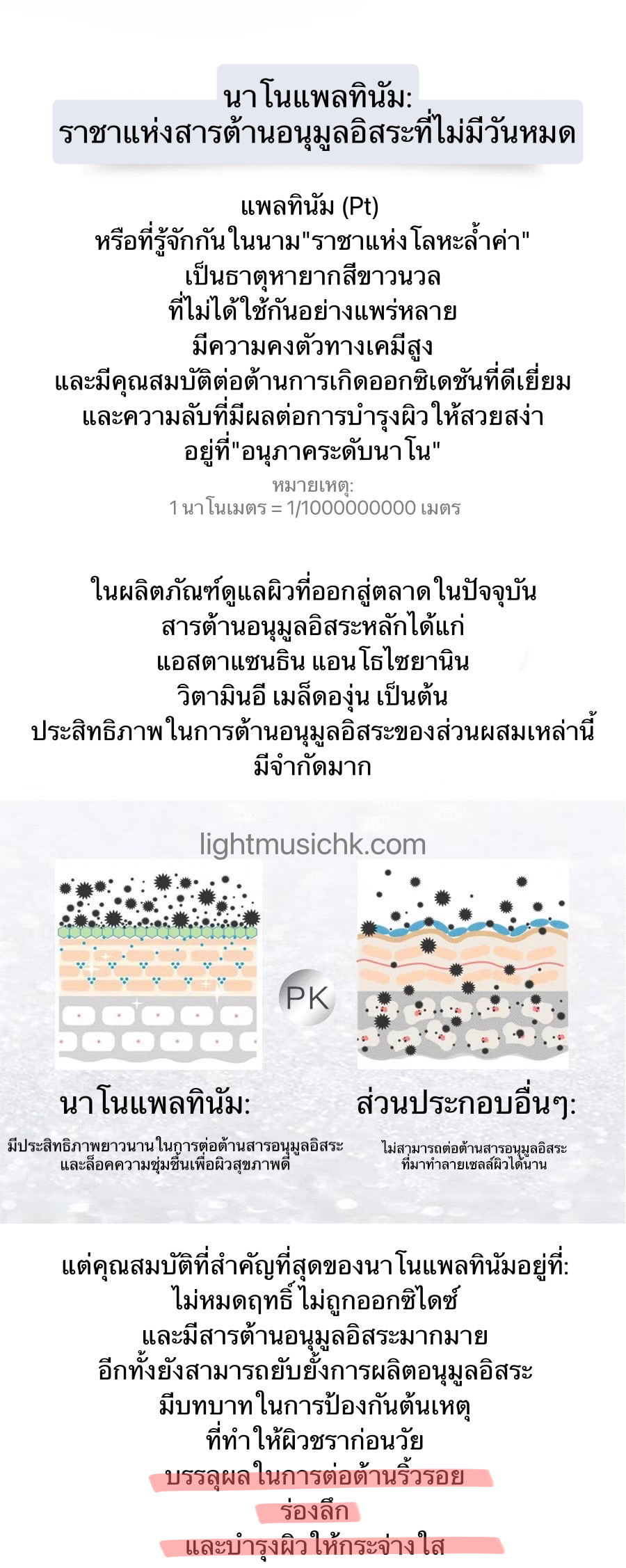 ในปี 2020 ครั้งแรกของโลกในการใช้เทคโนโลยีการดูแลผิวด้วยนาโนแพลทินัม ประยุกต์ใช้เพื่อการมาสก์บำรุงผิว