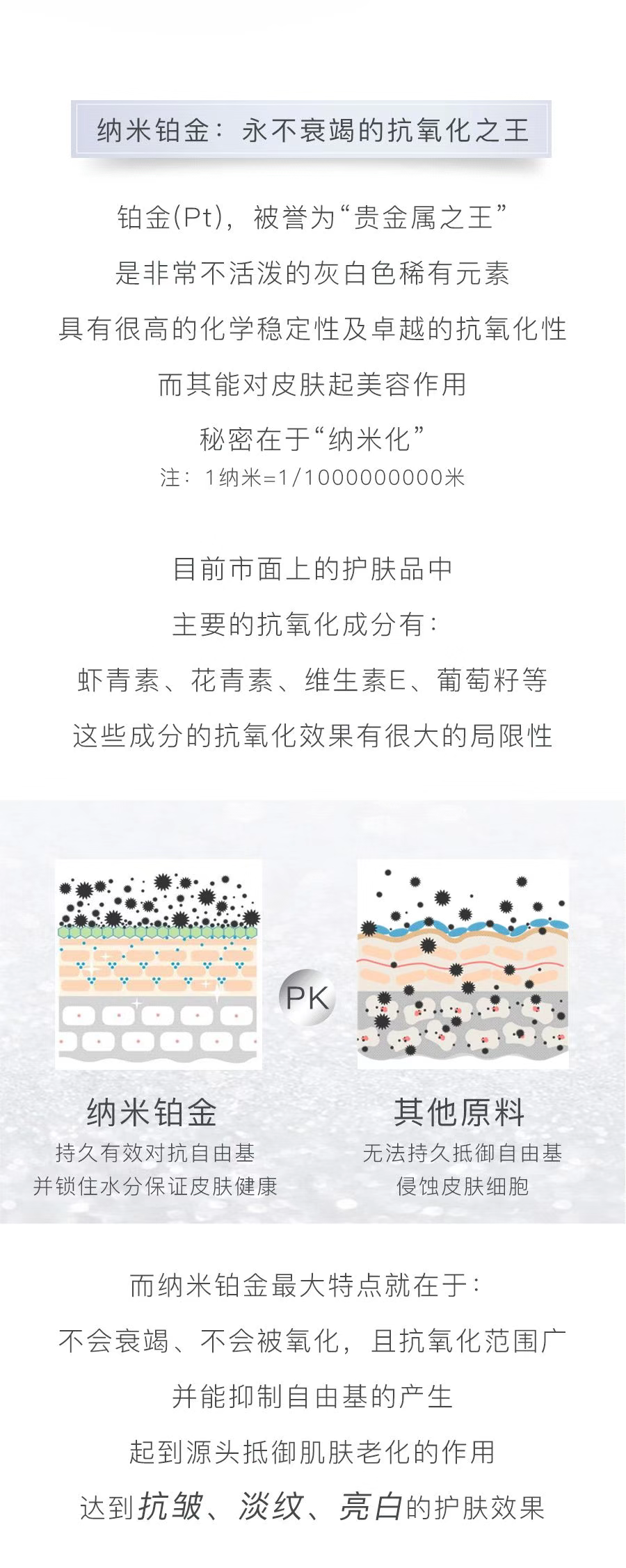 真实添加奢华铂金成分,尽享铂金时刻,肌肤宛若新生。