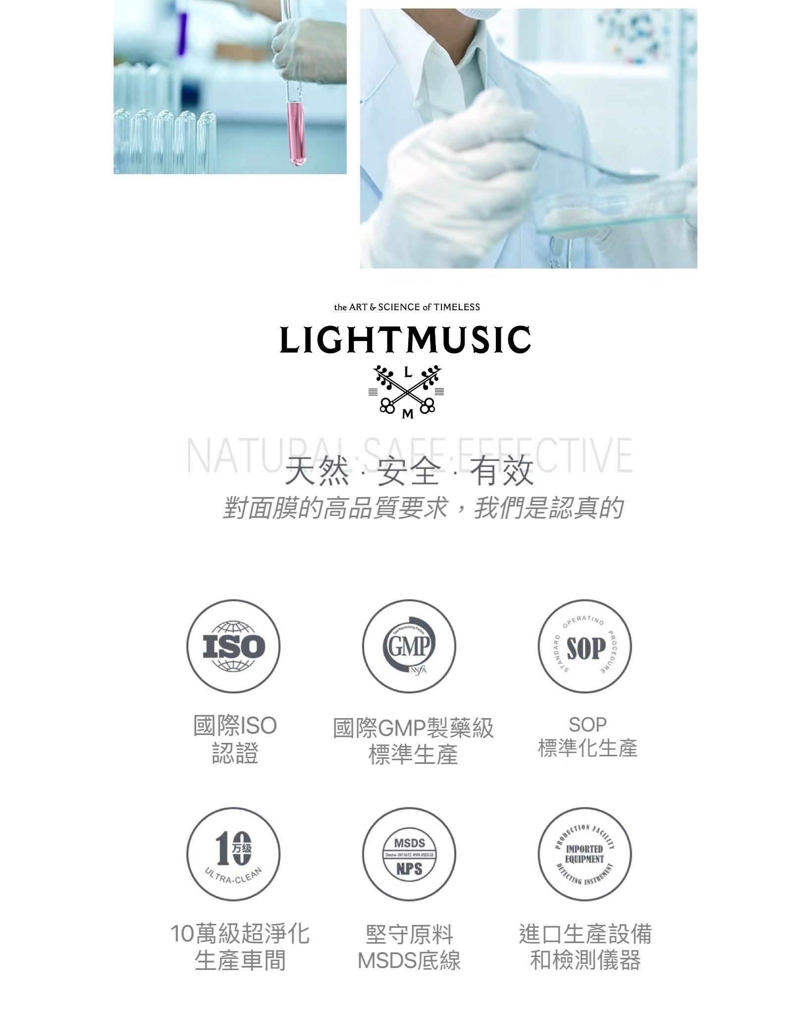 基于贝豪集团尖端护肤理念与前沿生物科技,LIGHTMUSIC与贝豪在台湾、中国佛山、保加利亚、法国等地,均设立了「面膜专项研究室」。