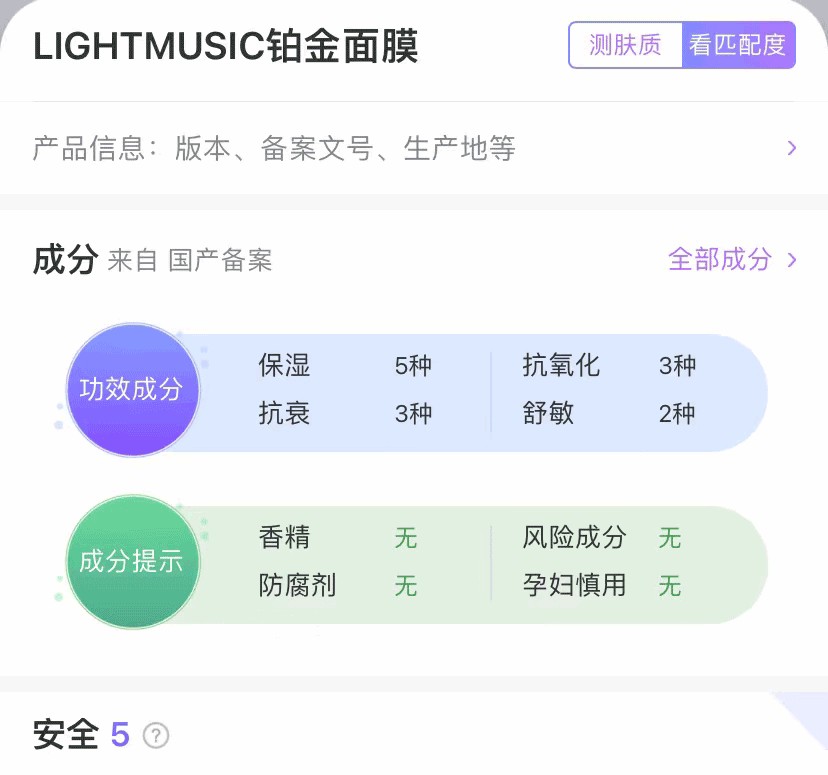 不同于市面上一般的面膜,LIGHTMUSIC系列面膜都追寻纯净护肤的理念,不仅均为温和低敏成分,无传统防腐、无香精、无风险性成分、无孕妇慎用成分,在美丽修行上都是全绿的高分。