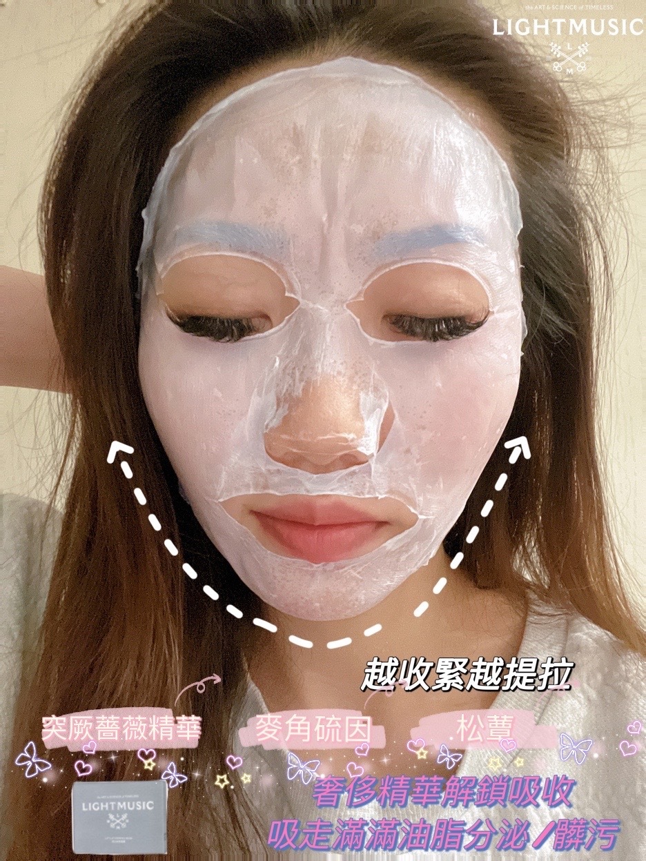 也可以配合后续使用LIGHTMUSIC其他面膜。或者交替LIGHTMUSIC其他功效面膜使用。