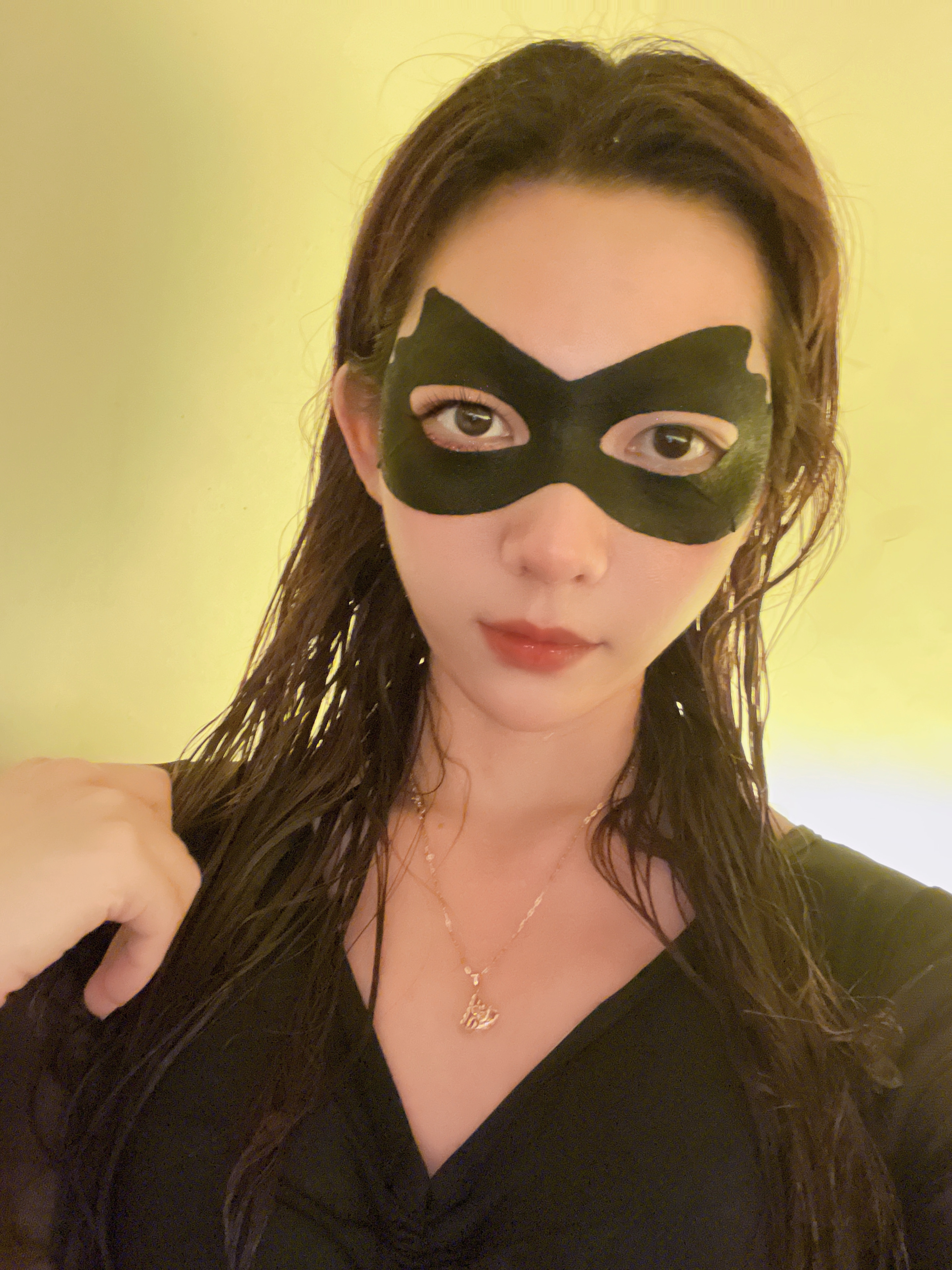 将眼膜对齐眉头和眼睛位置,调整眼膜与眼周肌肤贴合。