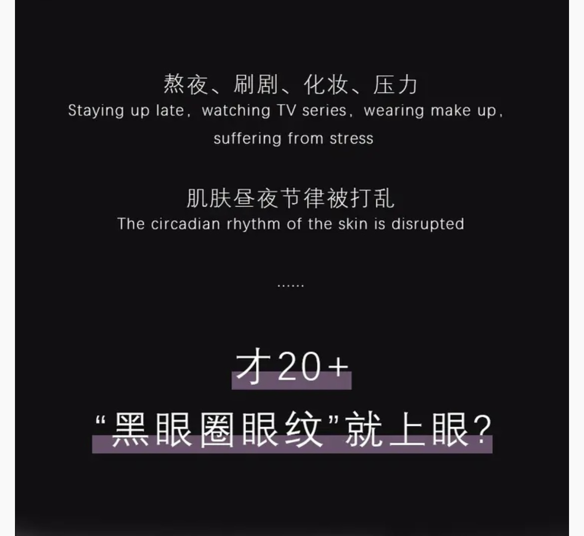 针对眼周出现的各种眼部问题,淡化黑眼圈祛水肿,唤醒眼周活力。