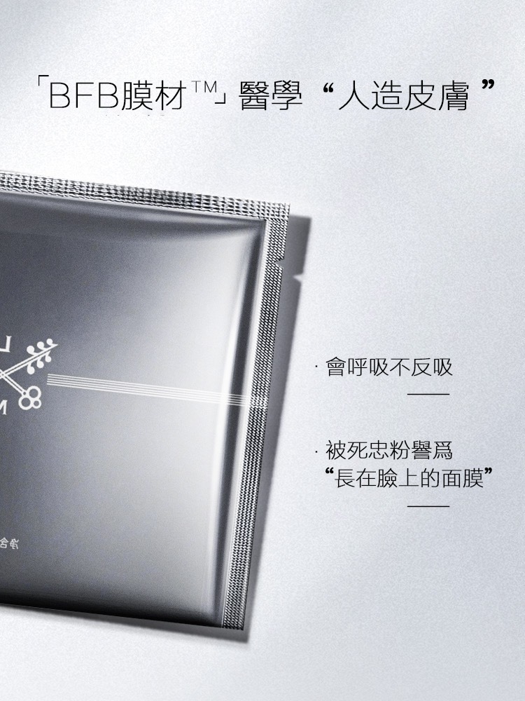 BFB3D中空状纳米纤维膜材,直径是传统面膜膜材的1/2500,可以深入肌肤最细的沟纹。