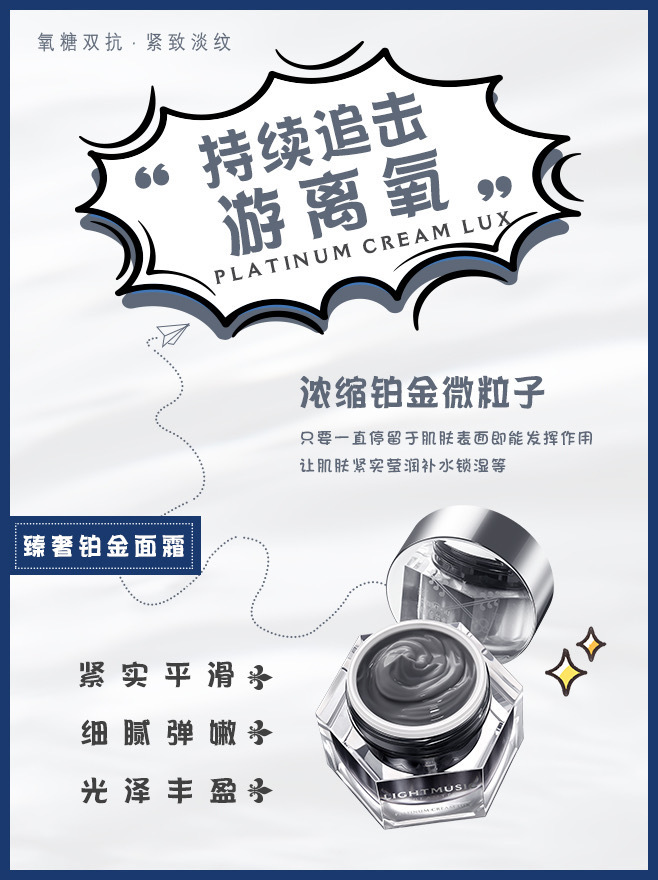 懒人用法:洁面后不想护肤步骤太繁琐,直接涂一层铂金霜即可;