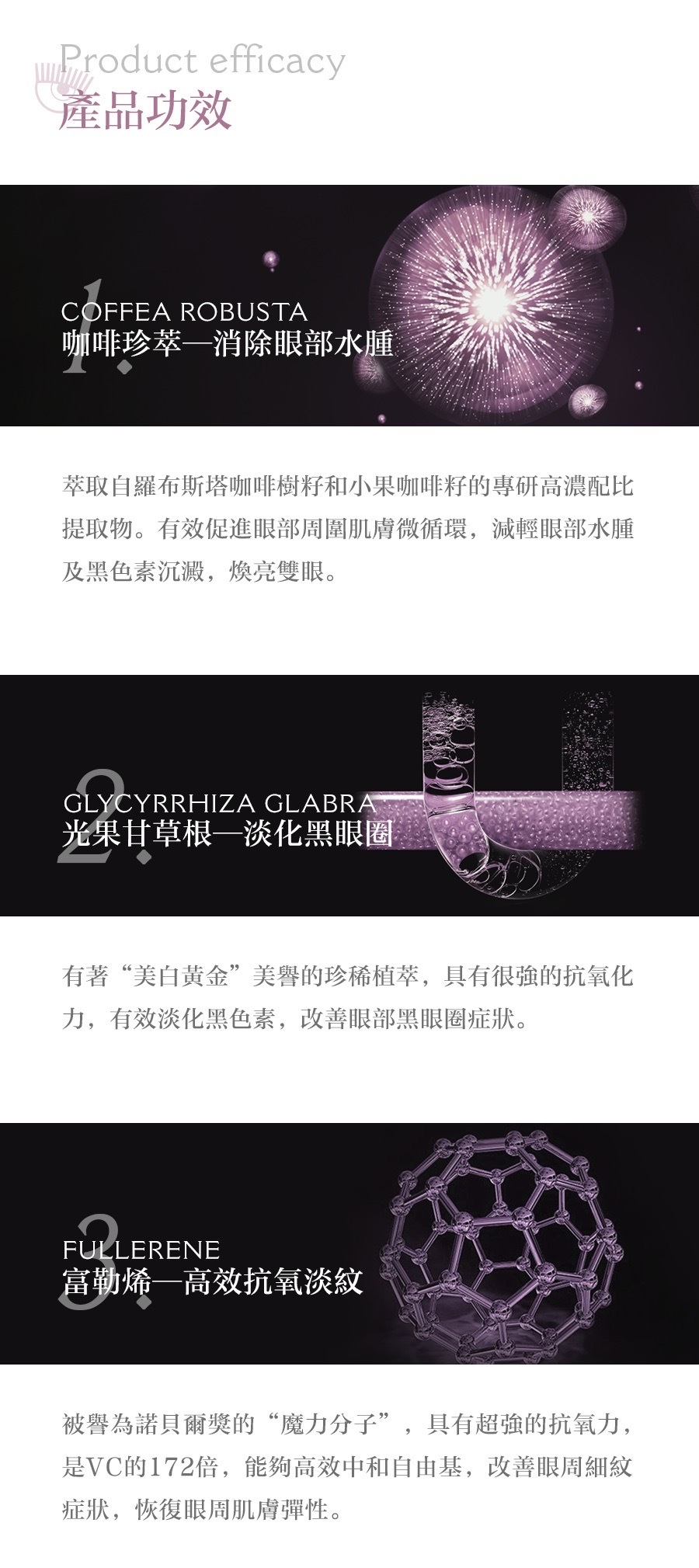 提取物。有效促進眼部周圍肌膚微循環,減輕眼部水腫